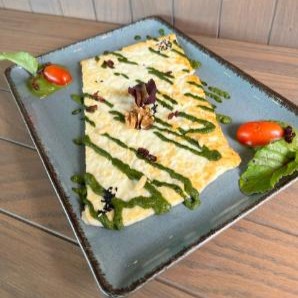 Baby rocca, burrata ,cherry tomato,fresh mushrooms,walnuts,pesto,served with balsamico sauce.
