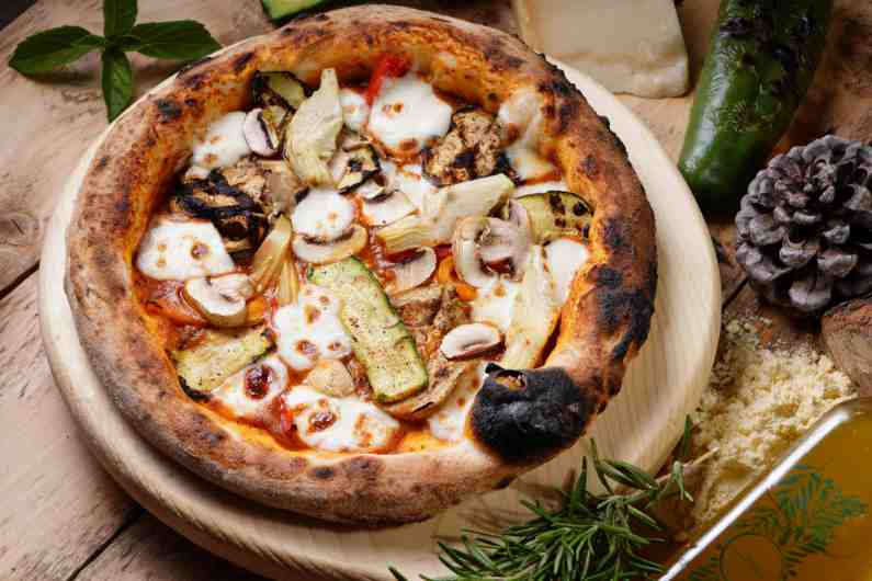 pomodoro sauce ,zucchini ,egg plants,mushroom, artichoke ,peppers, permesan cheese, mozzarella cheese